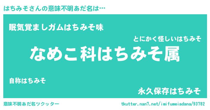 | ヘコむあだ名 | 『はちみそ(小並感)』『はちぷりん』 |