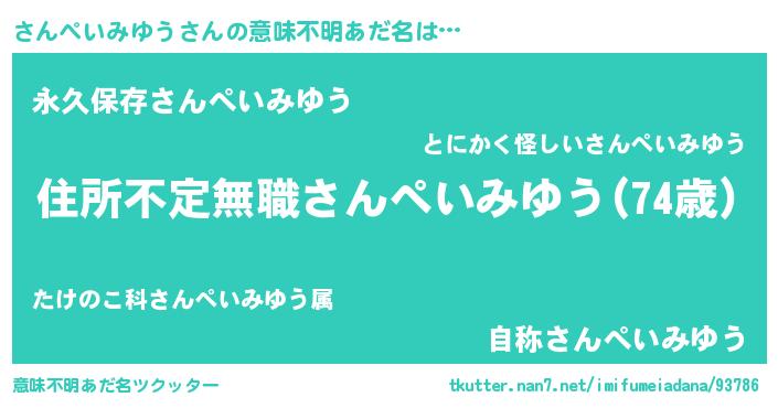 | ヘコむあだ名 | 『さんぺいみゆう(苦笑)』『さん太郎』 |