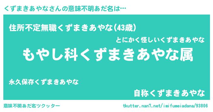 | ヘコむあだ名 | 『くずぷりん』『くずまきあやな(笑)』 |
