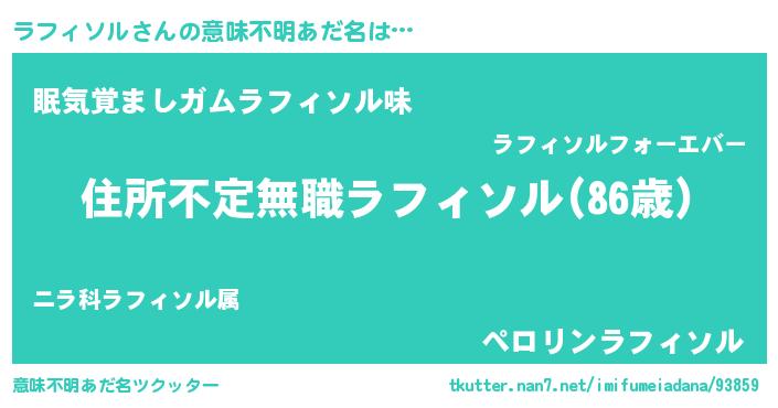 | ヒーロー風カッコイイあだ名 | 『仮面ラフダー』『慈愛の使者ラフィソル』 |