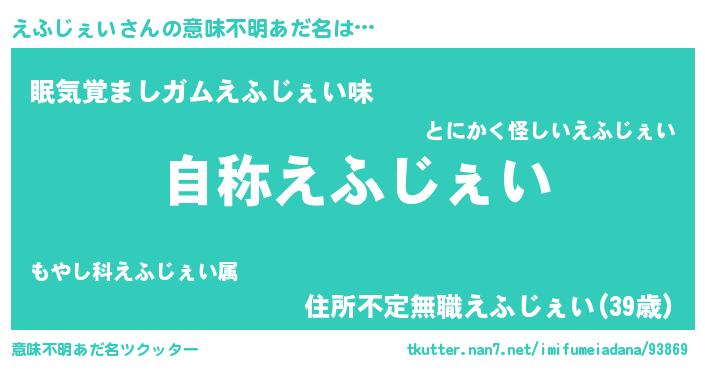 | 男性向けラノベタイトル風あだ名 | 『Re:えふじぇいから始める異世界生活』 |