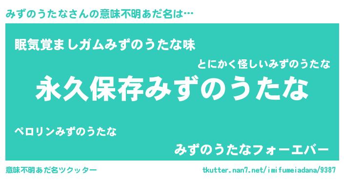 | ヘコむあだ名 | 『みずのうたな(爆)』『なまこ酢』 |