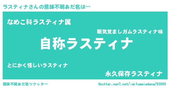 | 男性向けラノベタイトル風あだ名 | 『うちのラスティナが世界を掌握している!』 |