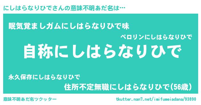 | 胡散臭い通販商品みたいなあだ名 | 『ガンによく効く高麗人参…その名も「にしはらなりひで」』 |