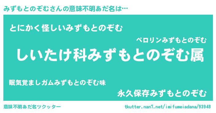 | ポケモン風あだ名 | 『ミズキング』『ヒミズモトノゾム』 |