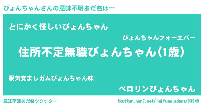 | 女子向けラノベタイトル風あだ名 | 『乙女ゲームの破滅フラグしかない悪役びょんちゃんに転生してしまった…』 |