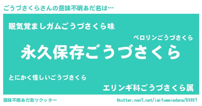 | 胡散臭い通販商品みたいなあだ名 | 『絶対に幸福をもたらす健康食品…その名も「ごうづさくら」』 |