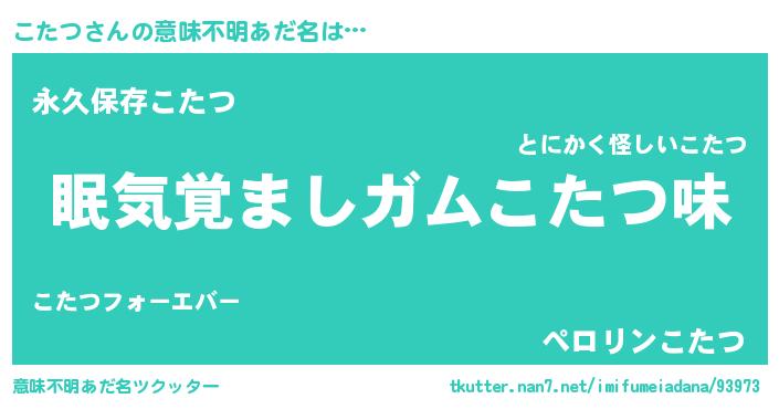 | ヒーロー風カッコイイあだ名 | 『愛の使者こたつ』『ネオコタツ』 |