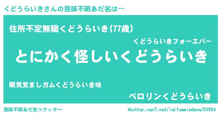 | 欧米人風あだ名 | 『ウサインくどうらいき』 |