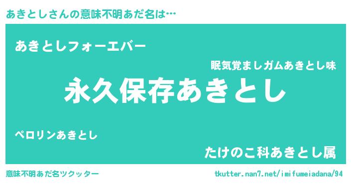 | 女子向けラノベタイトル風あだ名 | 『異世界で失敗しない100のあきとし』 |