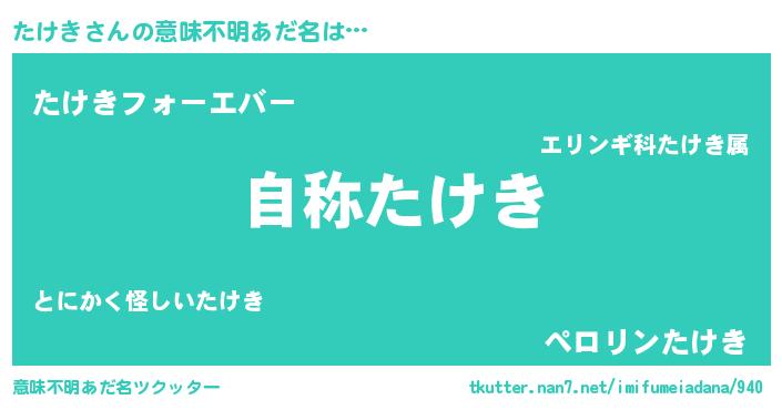 | ポケモン風あだ名 | 『メロタッケ』『タケセウス』 |