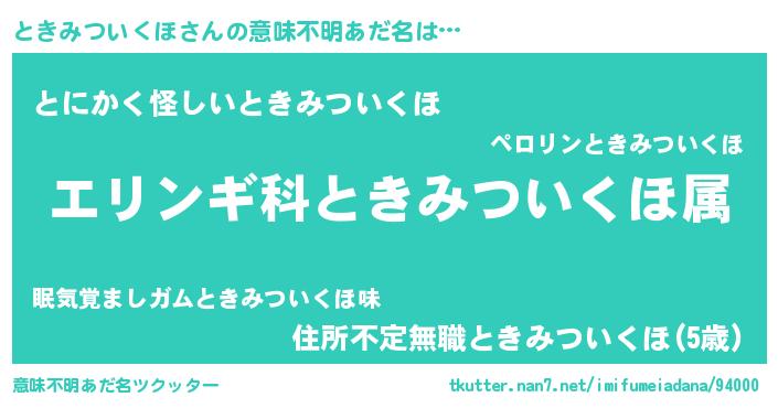 | 伝説のあだ名 | 『孤高の魔法使いときみついくほ』 |