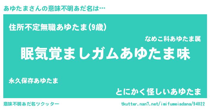 | ヒーロー風カッコイイあだ名 | 『正義の使者あゆたま』『仮面アユダー』 |