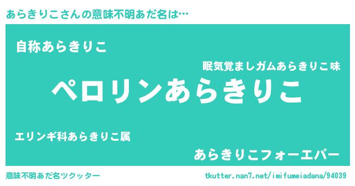 | 男性向けラノベタイトル風あだ名 | 『あらきりこの憂鬱』 |