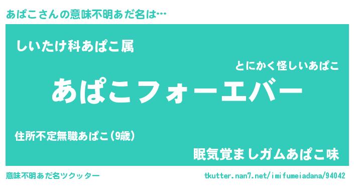 | 男性向けラノベタイトル風あだ名 | 『やはりあぱこの青春ラブコメはまちがっている 』 |