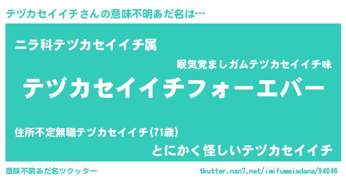 | ファンタジー風あだ名 | 『エターナルテヅカセイイチー』 |