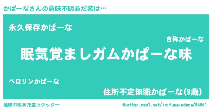 | ヒーロー風カッコイイあだ名 | 『愛の使者かぱーな』『ネオカパーナ』 |