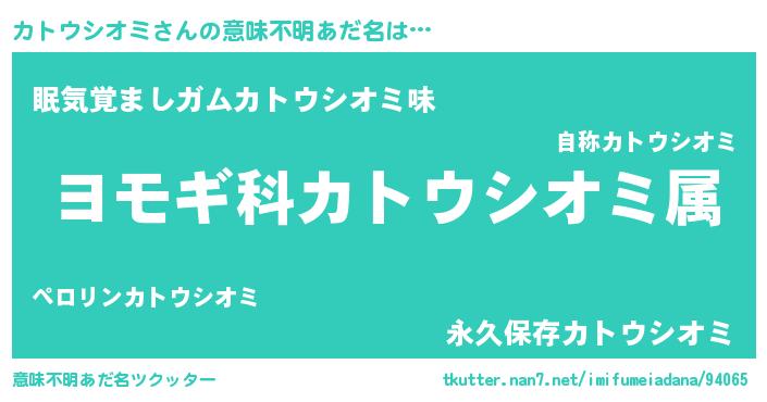 | 欧米人風あだ名 | 『トリンドルカトウシオミ』 |