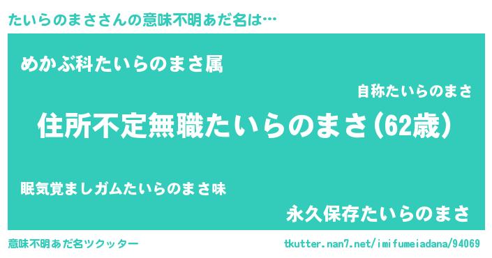 | ヒーロー風カッコイイあだ名 | 『仮面タイダー』『ネオタイラノマサ』 |