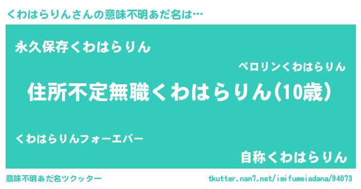 | 伝説のあだ名 | 『古より伝わる吟遊詩人くわはらりん』 |