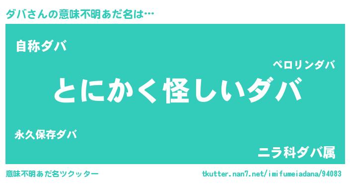 | 女子向けラノベタイトル風あだ名 | 『ダバの卵を拾いまして』 |