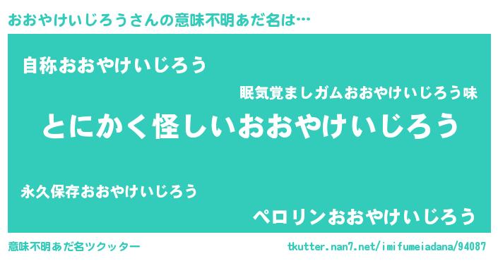 | 男性向けラノベタイトル風あだ名 | 『おおやけいじろうの嫁は女の子じゃないと思った?』 |