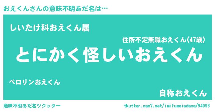 | 男性向けラノベタイトル風あだ名 | 『おえくんの嫁は女の子じゃないと思った?』 |