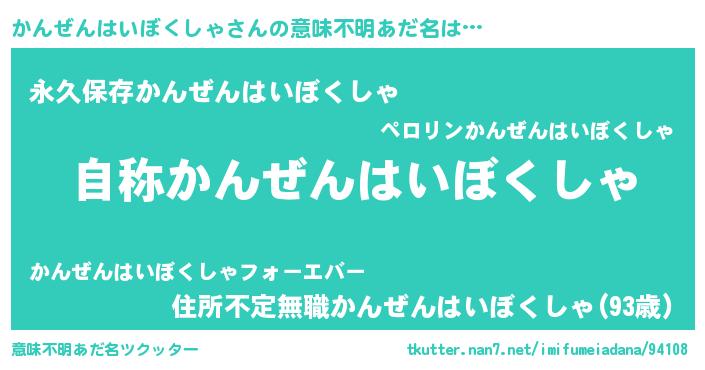 | ヘコむあだ名 | 『かんぜんはいぼくしゃ(笑)』『かんにー』 |