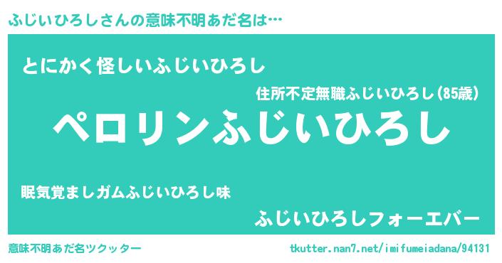 | 男性向けラノベタイトル風あだ名 | 『ふじいひろしに滅ぼされるだけの簡単なお仕事です』 |