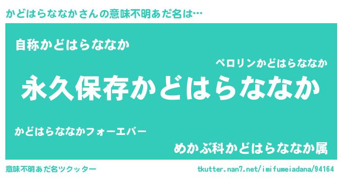| 胡散臭い通販商品みたいなあだ名 | 『前代未聞の健康食品…その名も「かどはらななか」』 |