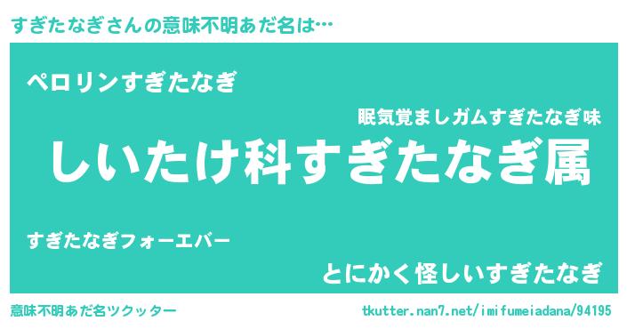 | 男性向けラノベタイトル風あだ名 | 『スギタナギスレイヤー』 |