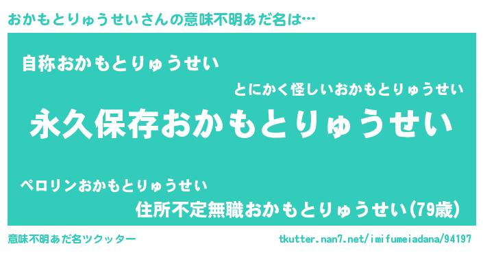 | 胡散臭い通販商品みたいなあだ名 | 『絶対に幸福をもたらす健康食品…その名も「おかもとりゅうせい」』 |