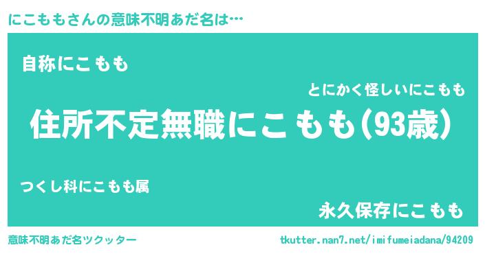 | 男性向けラノベタイトル風あだ名 | 『この素晴らしい世界ににこももを!』 |