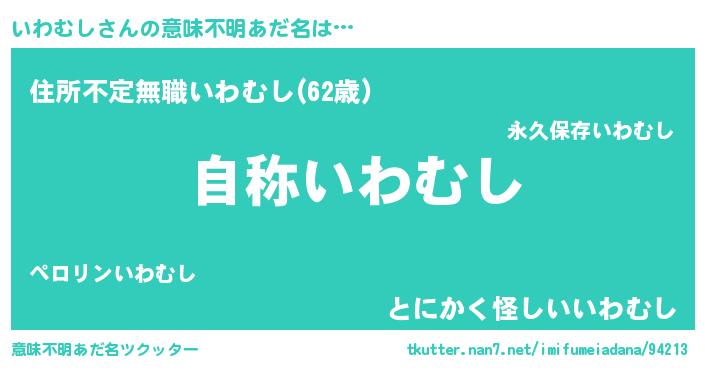 | 男性向けラノベタイトル風あだ名 | 『Re:いわむしから始める異世界生活』 |