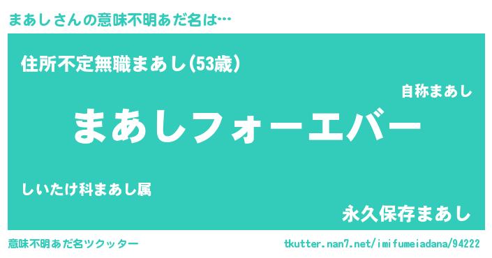 | 女子向けラノベタイトル風あだ名 | 『まあしの雑貨屋さん』『闇のまあし』 |