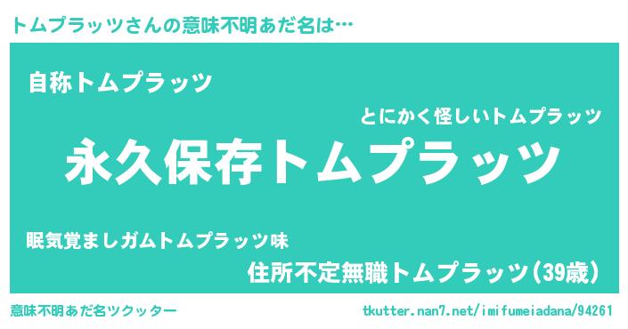 | ヒーロー風カッコイイあだ名 | 『ネオトムプラッツ』『仮面トムダー』 |