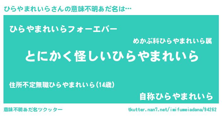 | 胡散臭い通販商品みたいなあだ名 | 『信頼と実績のサプリメント…その名も「ひらやまれいら」』 |