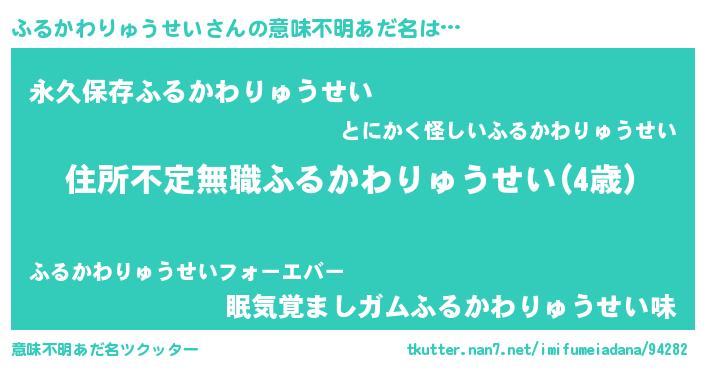 | 男性向けラノベタイトル風あだ名 | 『この素晴らしい世界にふるかわりゅうせいを!』 |