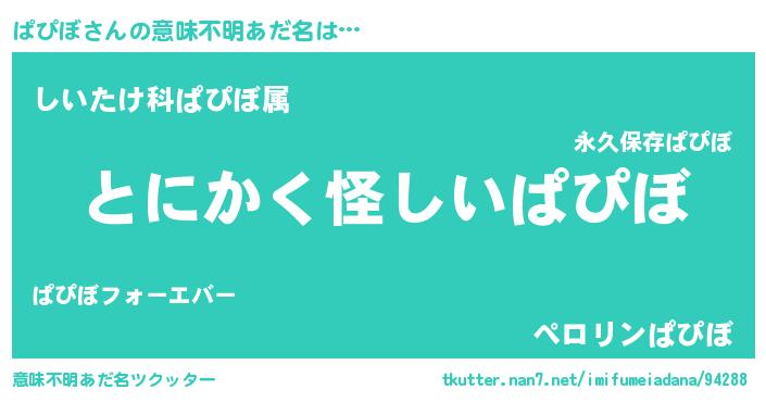 | 女子向けラノベタイトル風あだ名 | 『ぱぴぼの卵を拾いまして』 |