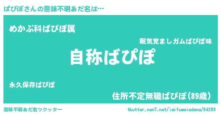 | ヘコむあだ名 | 『ばぴぽ(遠い目)』『ばぴぷりん』 |