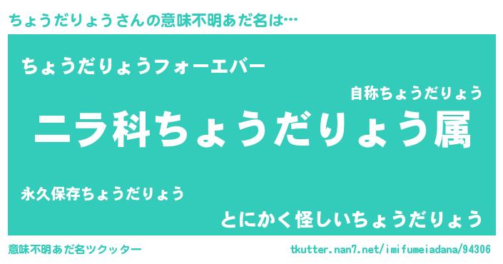 | 男性向けラノベタイトル風あだ名 | 『うちのちょうだりょうが世界を掌握している!』 |