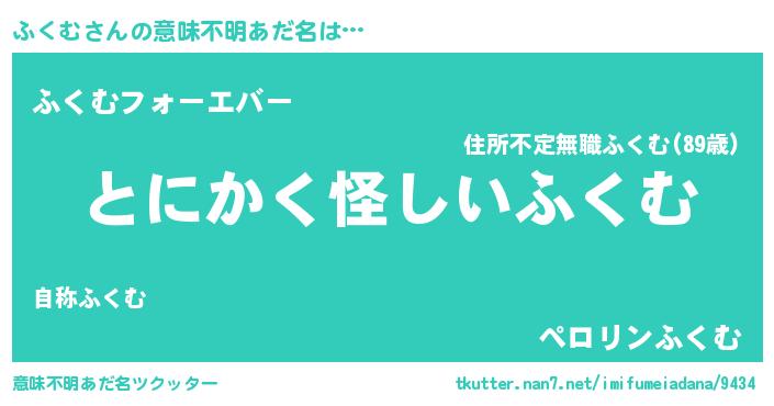 | 女子向けラノベタイトル風あだ名 | 『ふくむの卵を拾いまして』 |