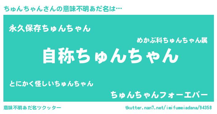 | 女子向けラノベタイトル風あだ名 | 『ちゅんちゃんアンティーク』 |