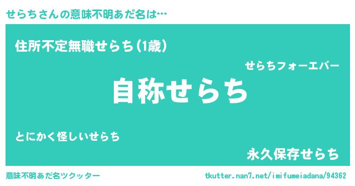 | 伝説のあだ名 | 『古より伝わる暗殺者せらち』 |