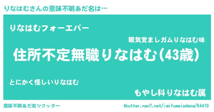 | 男性向けラノベタイトル風あだ名 | 『この素晴らしい世界にりなはむを!』 |