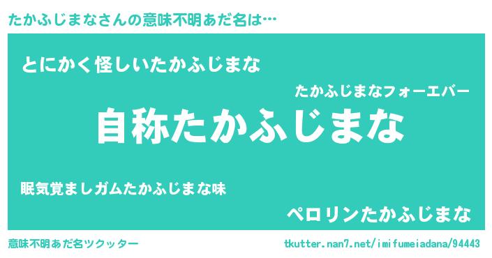 | 男性向けラノベタイトル風あだ名 | 『魔法科高校のたかふじまな』 |