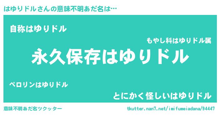 | 伝説のあだ名 | 『古より伝わる吟遊詩人はゆりドル』 |