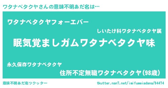 | 男性向けラノベタイトル風あだ名 | 『ワタナベタクヤに滅ぼされるだけの簡単なお仕事です』 |
