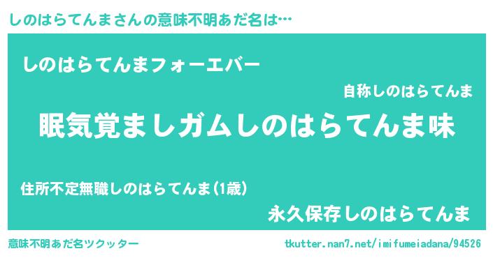 | ヒーロー風カッコイイあだ名 | 『慈愛の使者しのはらてんま』 |