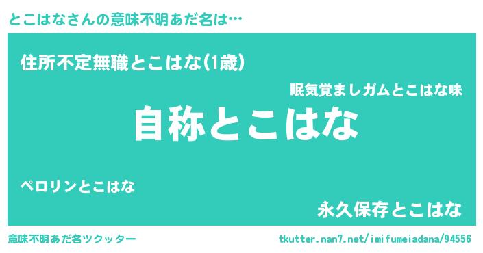 | 女子向けラノベタイトル風あだ名 | 『とこはなストレイドッグス』 |